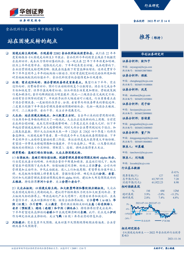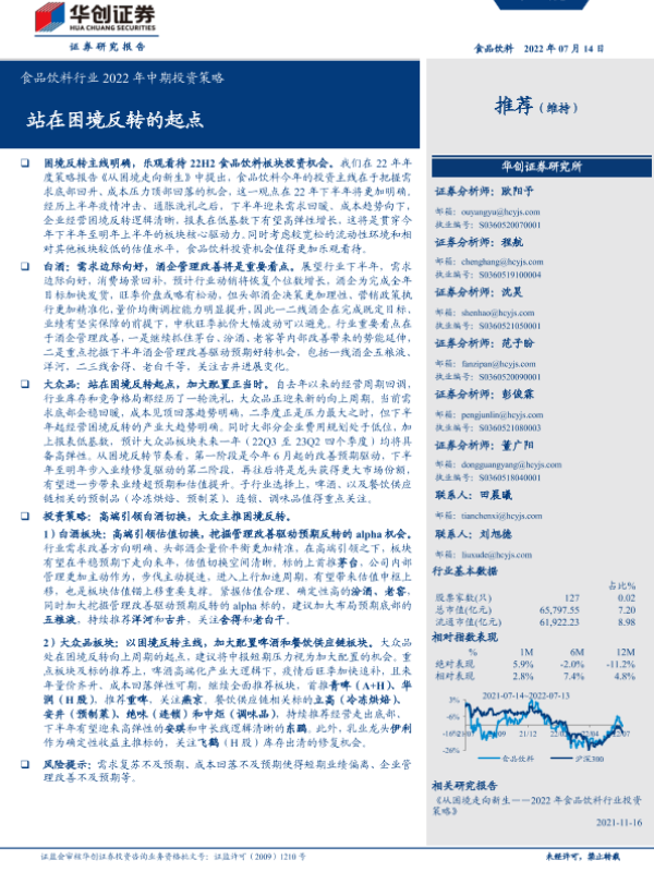 【华创证券】【20220714】食品饮料行业2022年中期投资策略:站在困境反转的起点-37页