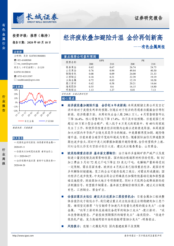 【长城证券】【20200518】20200518-长城证券-有色金属周报:经济疲软叠加避险升温 金价再创新高-11页