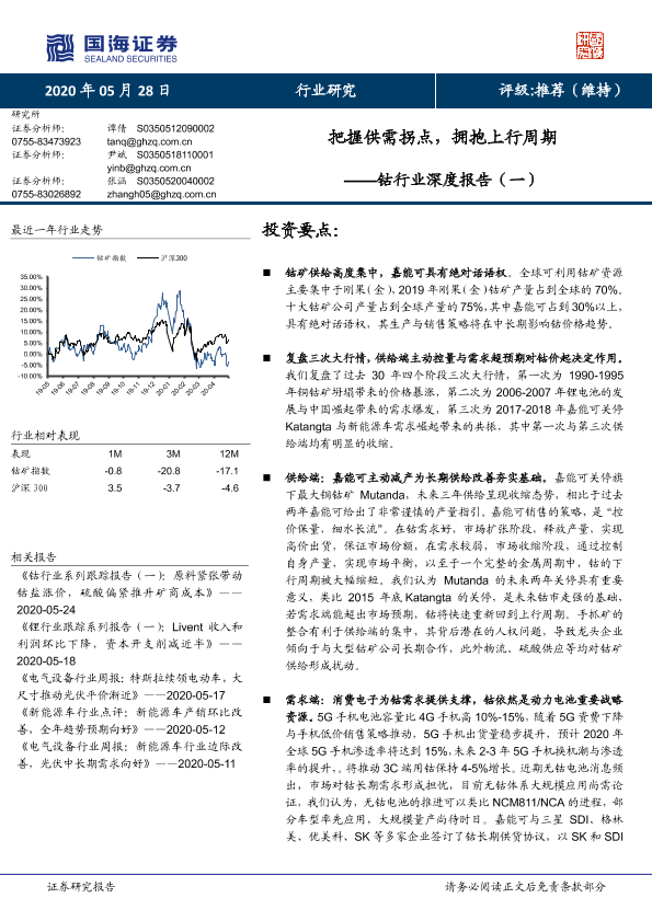 【国海证券】【20200528】20200528-国海证券-钴行业深度报告(一):把握供需拐点,拥抱上行周期-22页