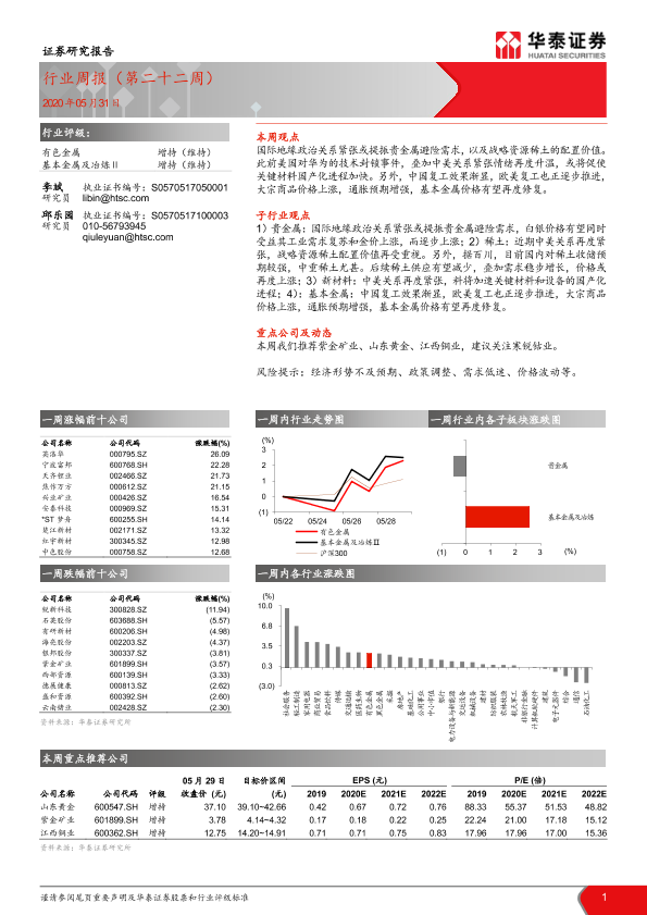 【华泰证券】【20200531】20200531-华泰证券-有色金属行业周报(第二十二周)-16页