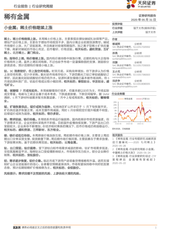 【天风证券】【20200531】20200531-天风证券-稀有金属:小金属:稀土价格继续上涨-16页