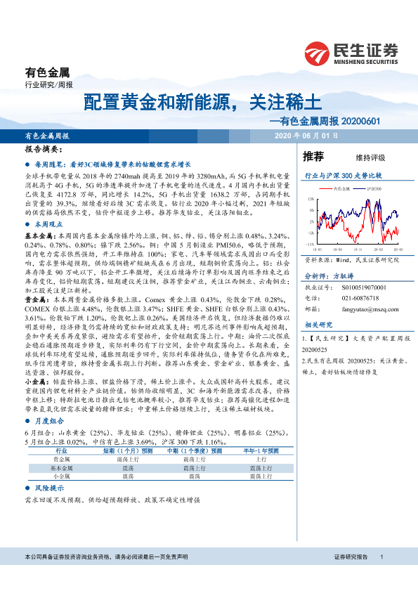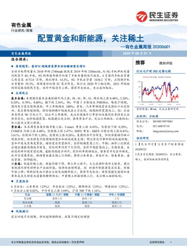 【民生证券】【20200601】20200601-民生证券-有色金属周报:配置黄金和新能源,关注稀土-18页