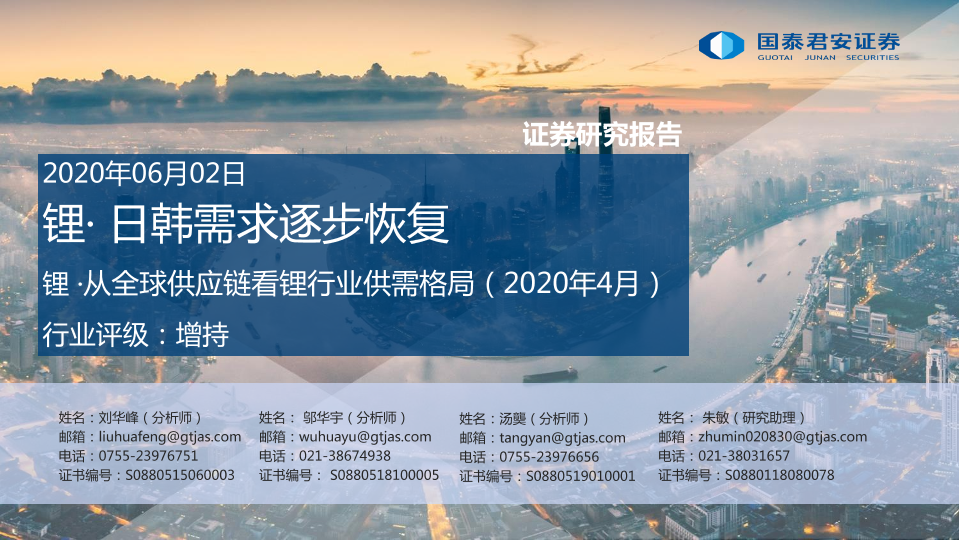 【国泰君安证券】【20200602】锂·日韩需求逐步恢复:从全球供应链看锂行业供需格局(2020年4月)-24页