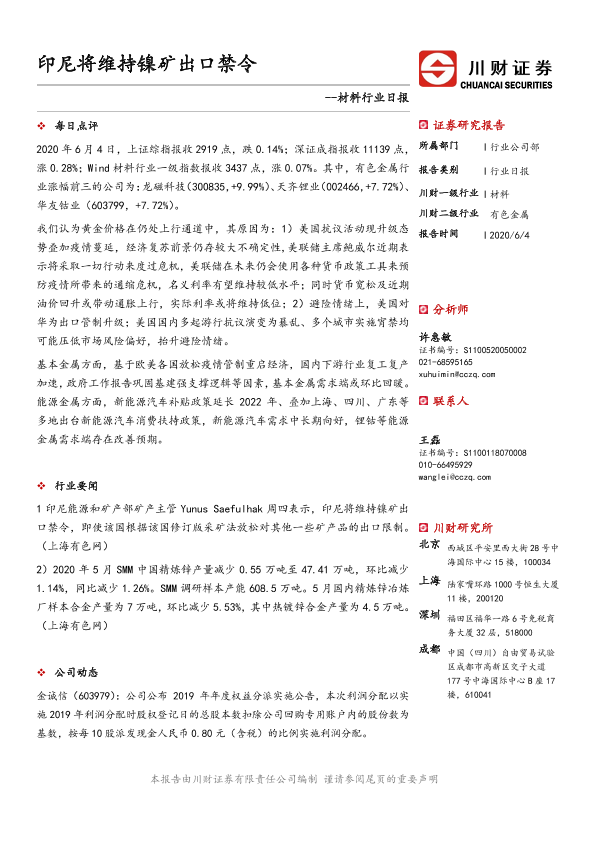 【川财证券】【20200604】材料行业日报:印尼将维持镍矿出口禁令-3页