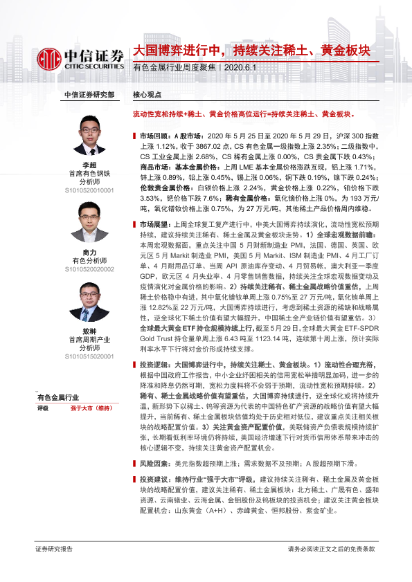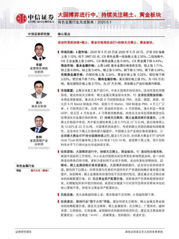 【中信证券】【20200601】20200601-中信证券-有色金属行业周度聚焦:大国博弈进行中,持续关注稀土、黄金板块-16页