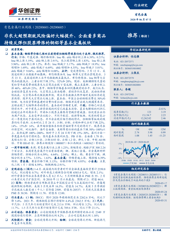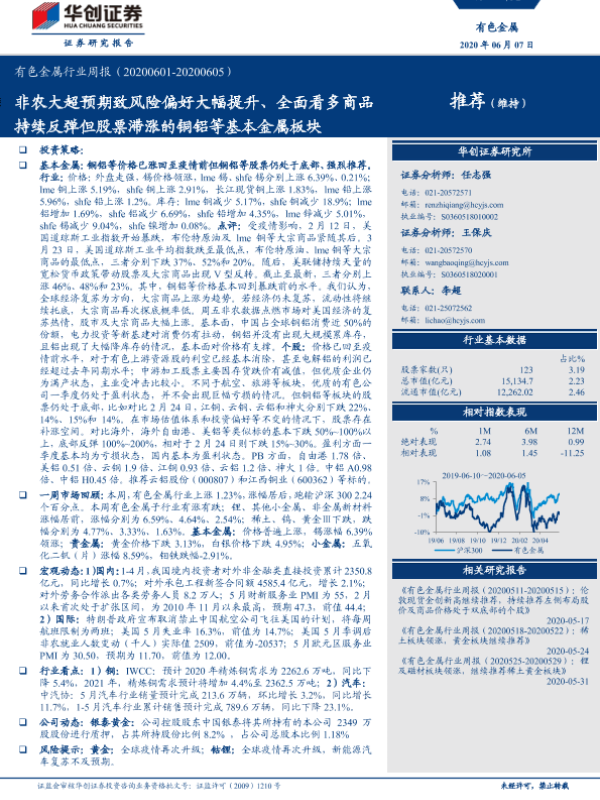【华创证券】【20200607】20200607-华创证券-有色金属行业周报:非农大超预期致风险偏好大幅提升、全面看多商品持续反弹但股票滞涨的铜铝等基本金属板块-16页