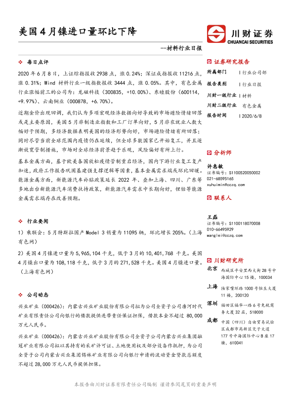 【川财证券】【20200608】材料行业日报:美国4月镍进口量环比下降-3页