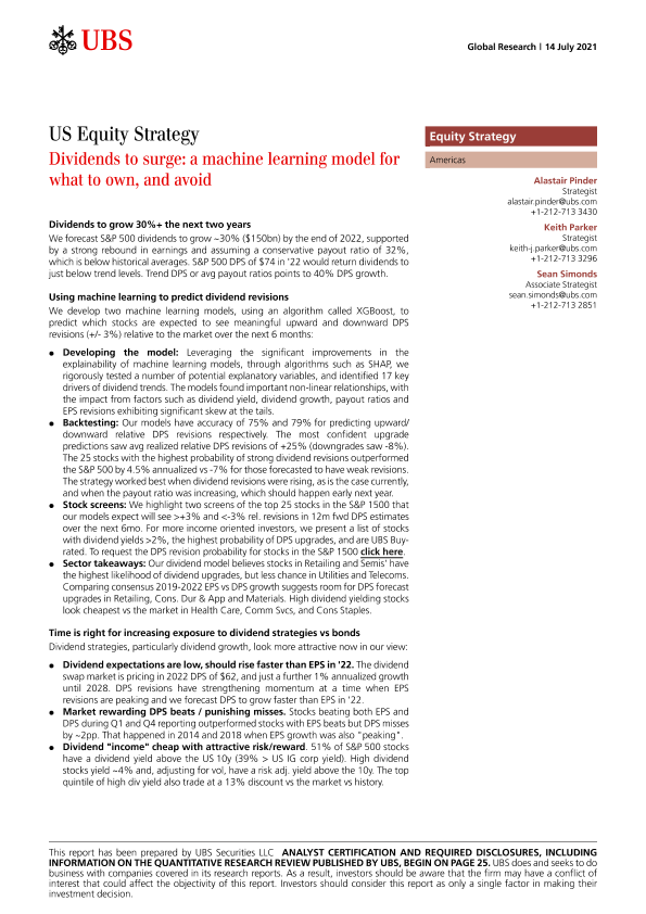 【瑞银】【20210714】瑞银-美股投资策略-红利激增:一种机器学习模型,决定该拥有什么,又该避免什么-30页