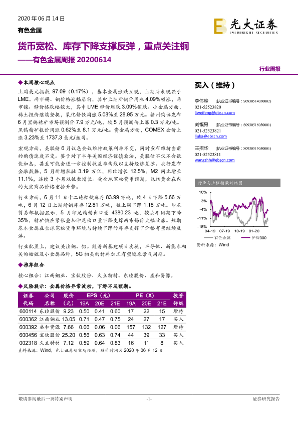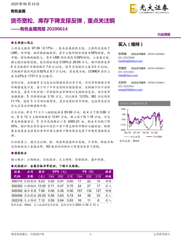 【光大证券】【20200614】20200614-光大证券-有色金属周报:货币宽松、库存下降支撑反弹,重点关注铜-13页