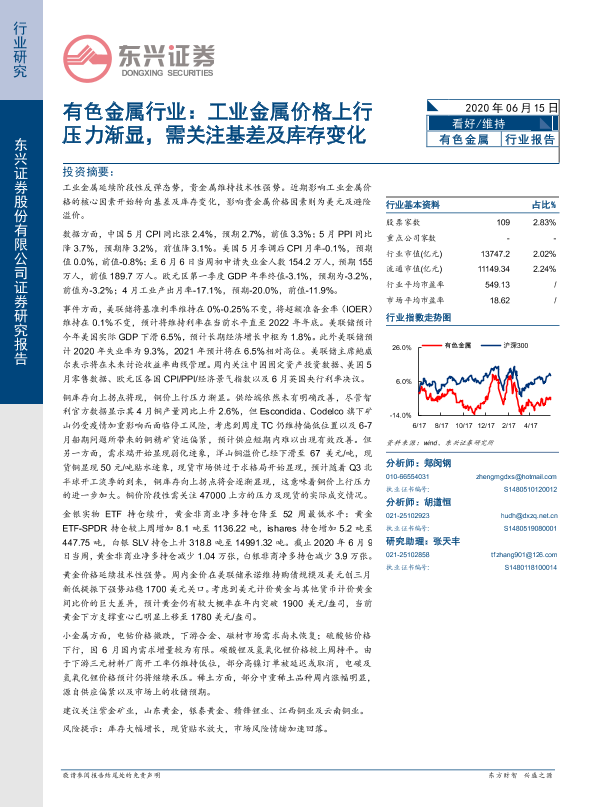【东兴证券】【20200615】有色金属行业:工业金属价格上行压力渐显,需关注基差及库存变化-16页