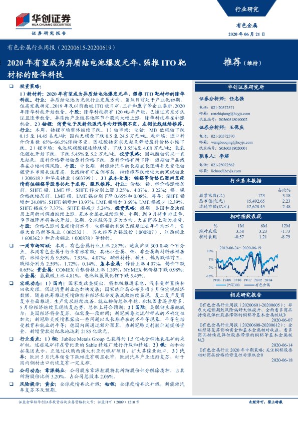 【华创证券】【20200621】20200621-华创证券-有色金属行业周报:2020年有望成为异质结电池爆发元年、强推ITO靶材标的隆华科技-16页
