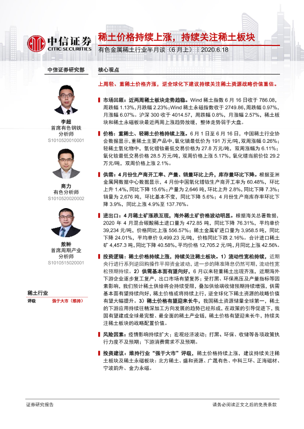 【中信证券】【20200618】20200618-中信证券-有色金属稀土行业半月谈(6月上):稀土价格持续上涨,持续关注稀土板块-32页