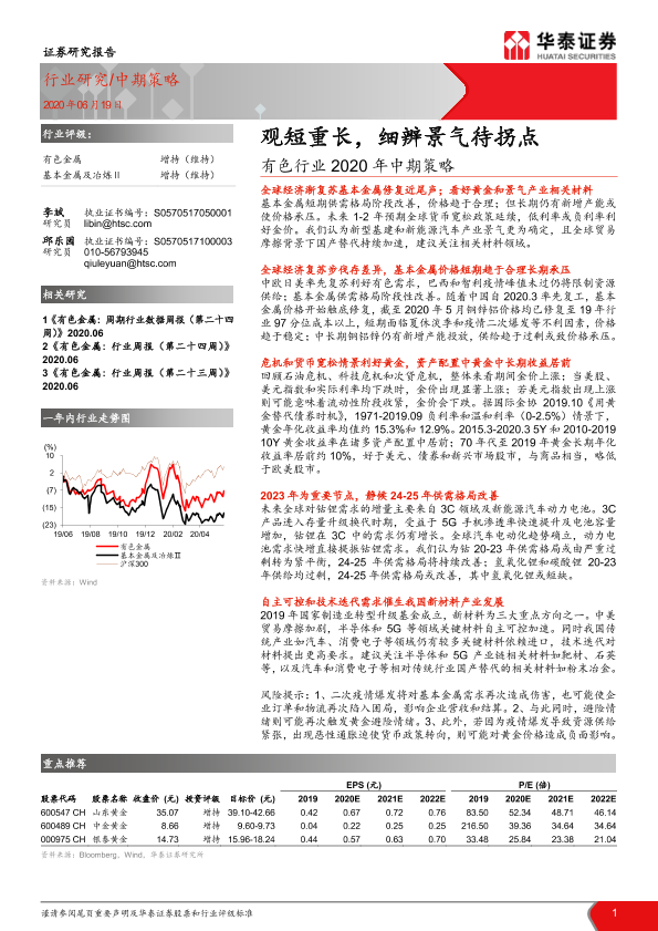 【华泰证券】【20200619】有色行业2020年中期策略-26页