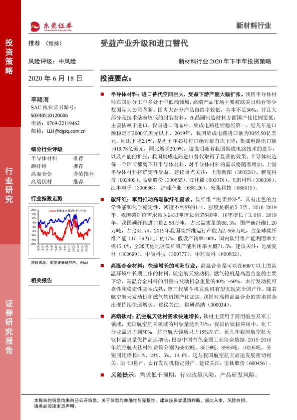 【东莞证券】【20200618】新材料行业2020年下半年投资策略:受益产业升级和进口替代-28页
