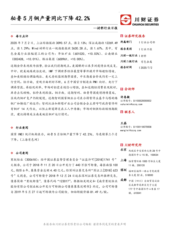 【川财证券】【20200702】材料行业日报:秘鲁5月铜产量同比下降42.2%-3页