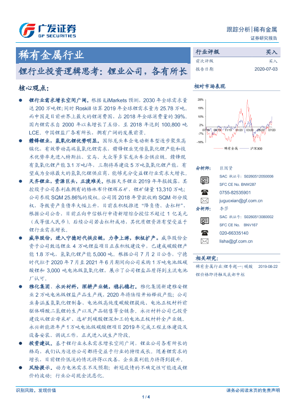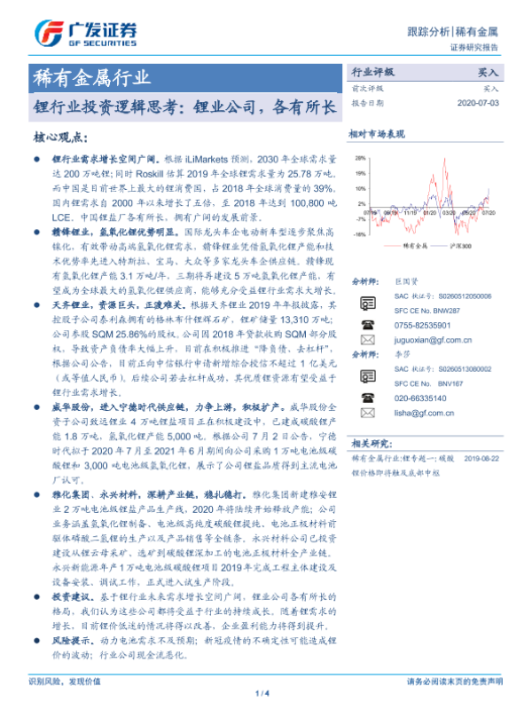 【广发证券】【20200703】稀有金属行业:锂行业投资逻辑思考:锂业公司,各有所长-4页