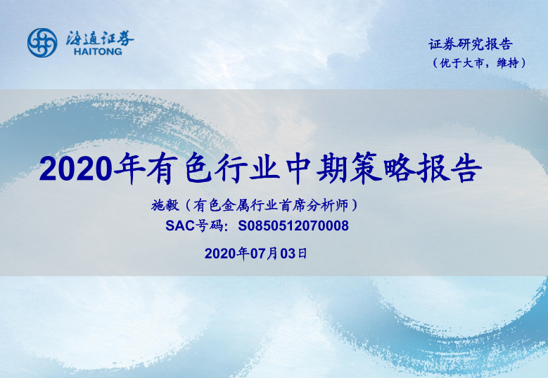 【海通证券】【20200703】2020年有色行业中期策略报告-10页