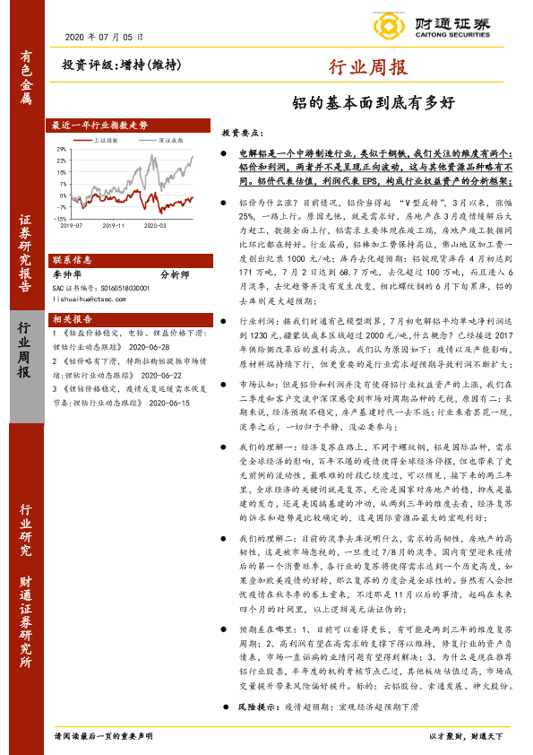 【财通证券】【20200705】20200705-财通证券-有色金属行业周报:铝的基本面到底有多好-6页