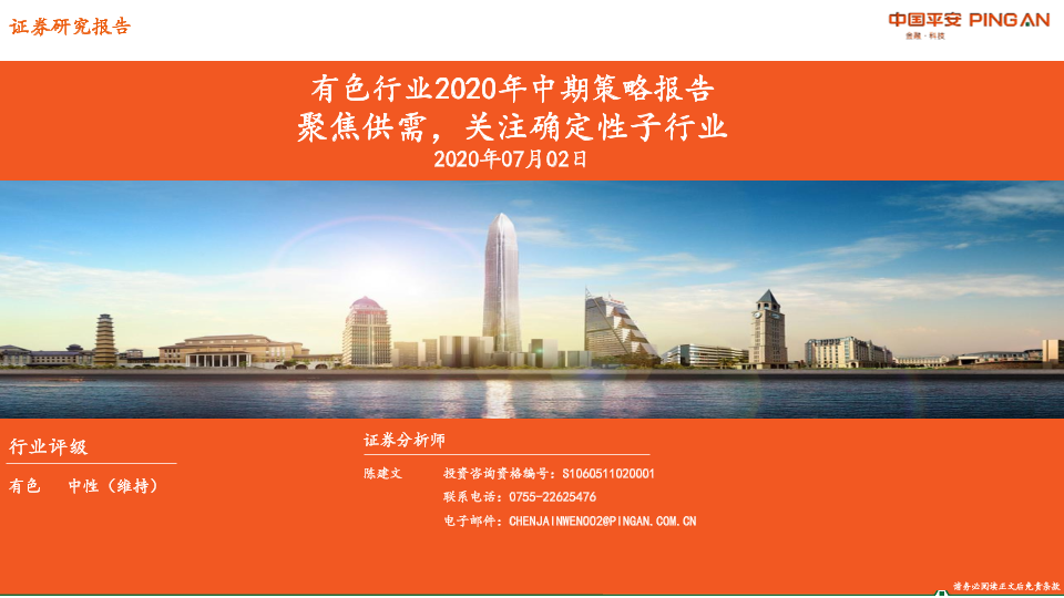 【平安证券】【20200702】有色行业2020年中期策略报告:聚焦供需,关注确定性子行业-32页