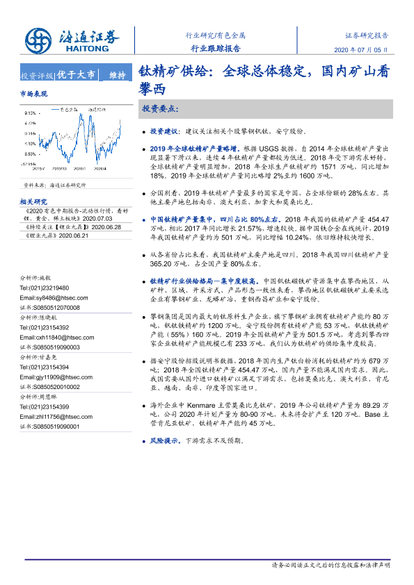 【海通证券】【20200705】钛精矿供给:全球总体稳定,国内矿山看攀西-5页