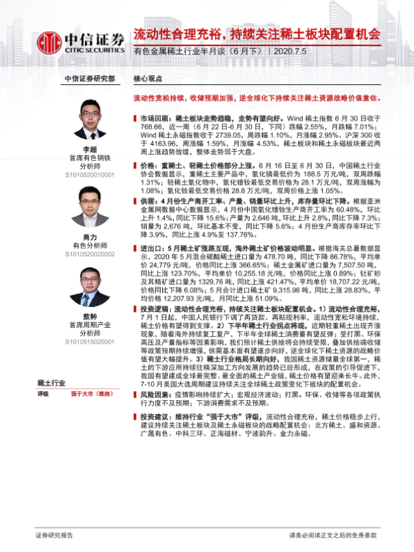 【中信证券】【20200705】有色金属稀土行业半月谈(6月下)-33页
