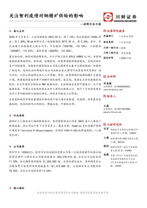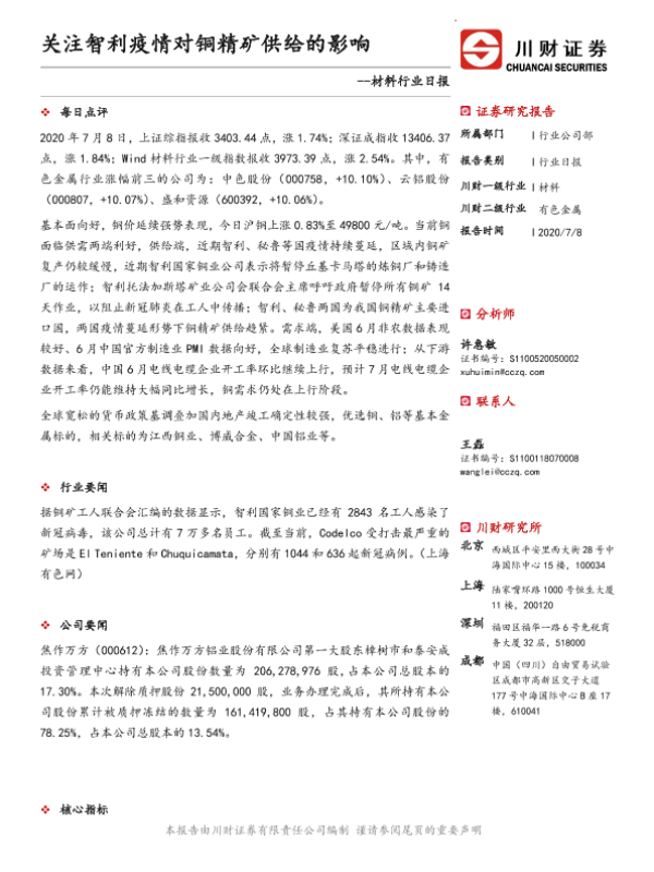 【川财证券】【20200708】材料行业日报:关注智利疫情对铜精矿供给的影响-3页