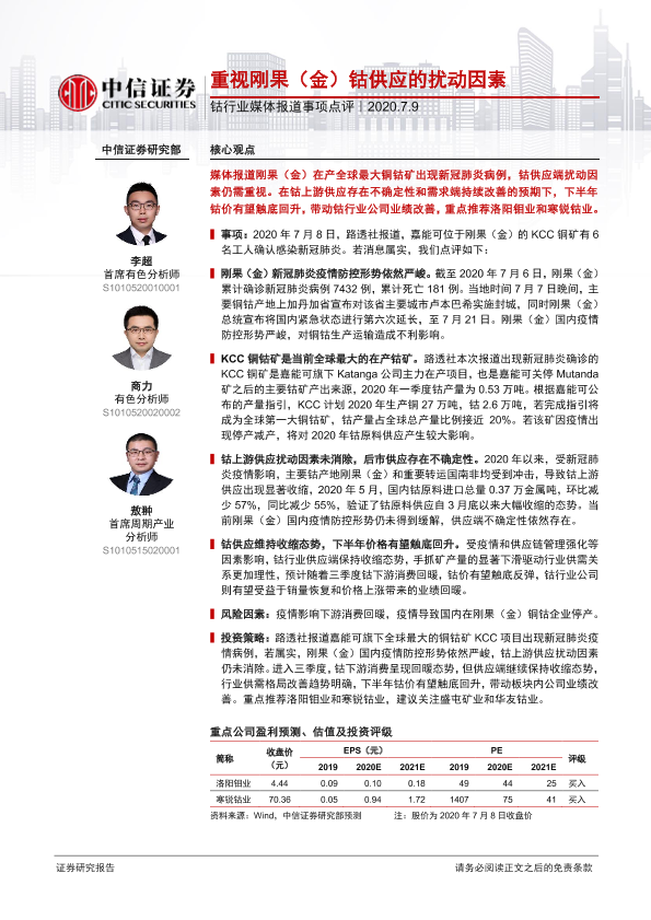 【中信证券】【20200709】钴行业媒体报道事项点评:重视刚果(金)钴供应的扰动因素-3页