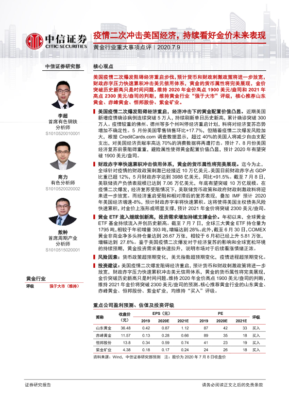 【中信证券】【20200709】疫情二次冲击美国经济,持续看好金价未来表现-2页