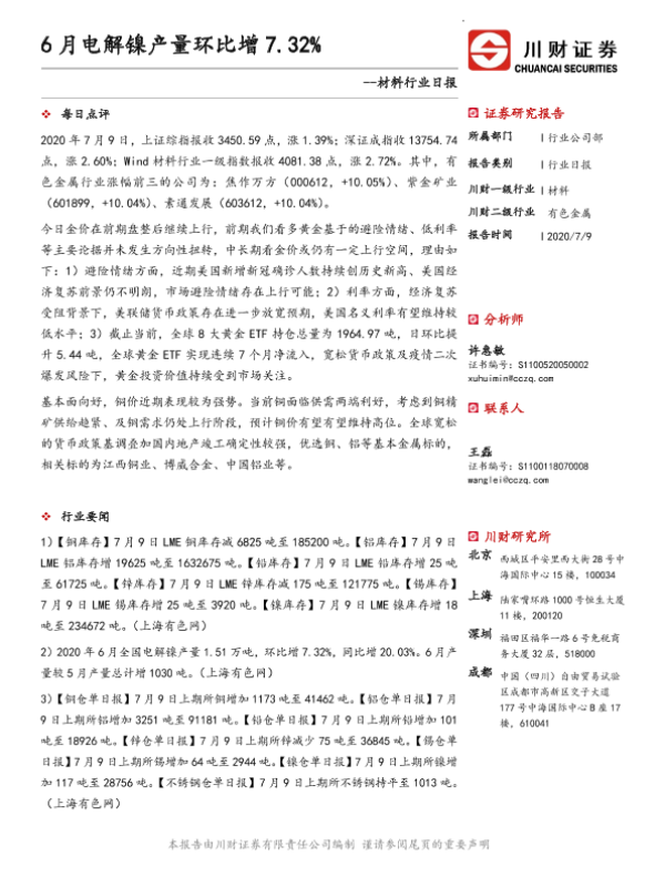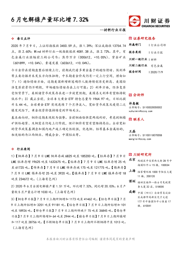 【川财证券】【20200709】6月电解镍产量环比增7.32%-3页