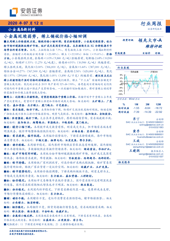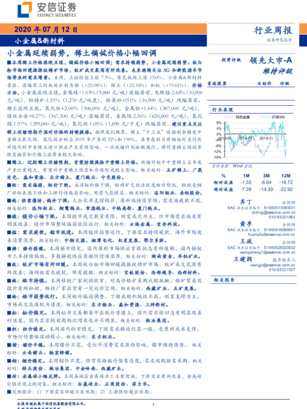 【安信证券】【20200712】小金属&新材料:小金属延续弱势,稀土镝铽价格小幅回调-27页