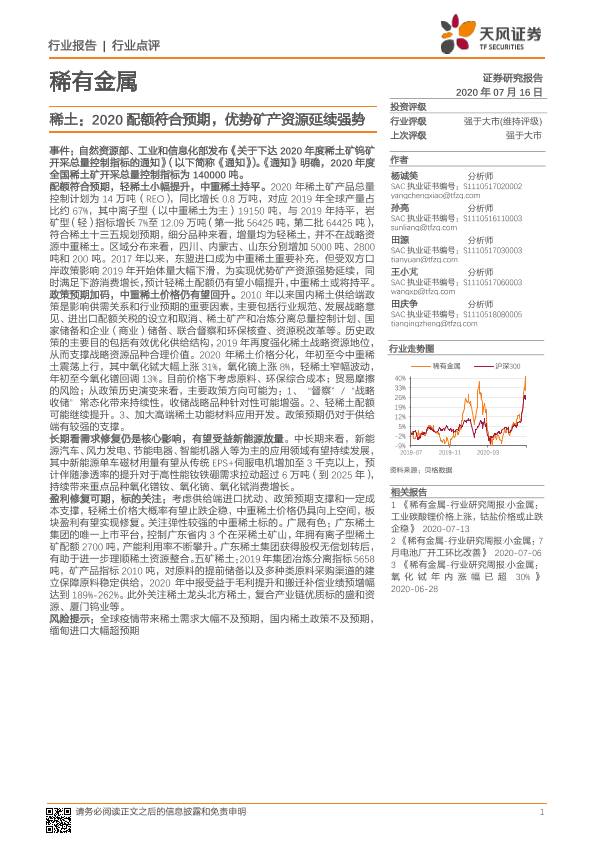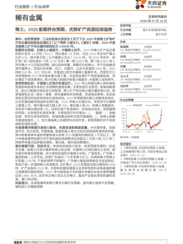 【天风证券】【20200716】稀有金属:稀土:2020配额符合预期,优势矿产资源延续强势-2页