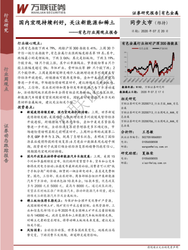 【万联证券】【20200720】20200720-万联证券-有色行业周观点报告:国内宏观持续利好,关注新能源和稀土-15页