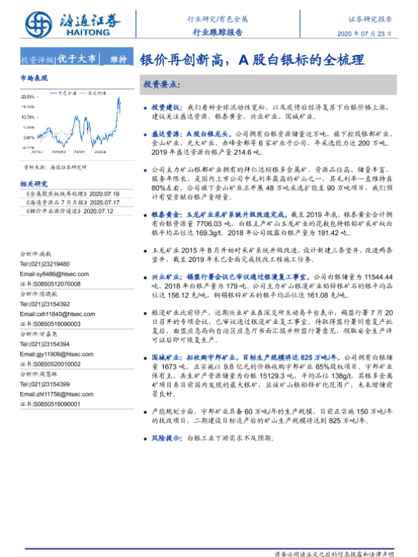 【海通证券】【20200723】20200723-海通证券-有色金属行业跟踪报告:银价再创新高,A股白银标的全梳理-3页