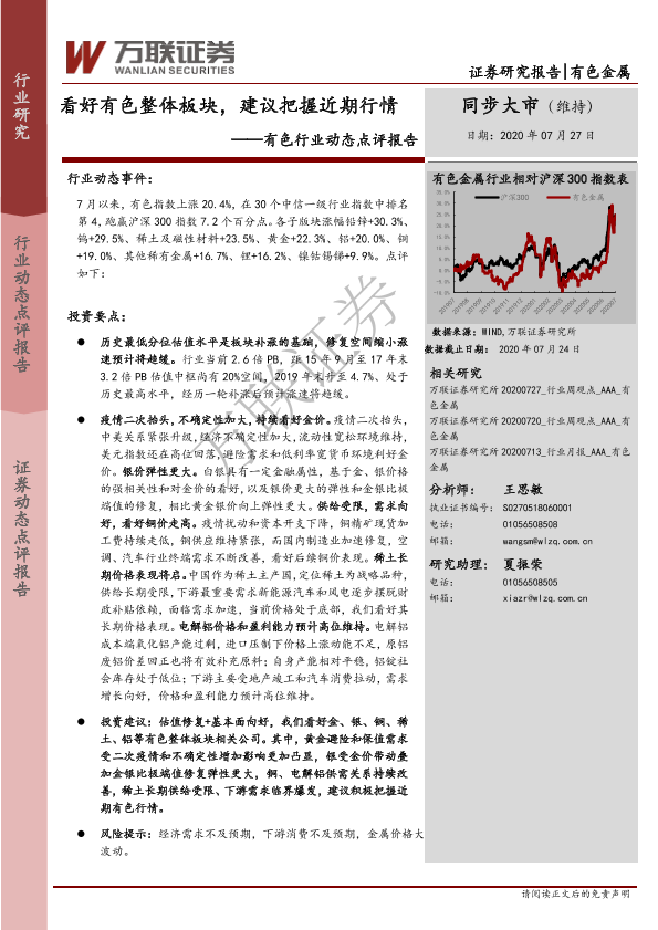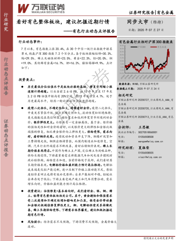 【万联证券】【20200727】20200727-万联证券-有色行业动态点评报告:看好有色整体板块,建议把握近期行情-11页