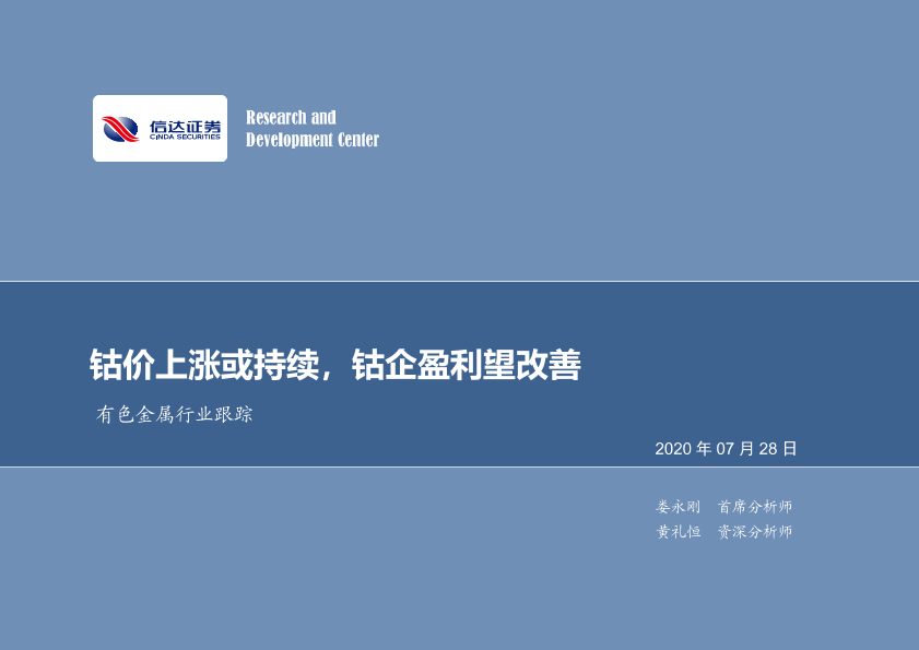 【信达证券】【20200728】20200728-信达证券-有色金属行业跟踪:钴价上涨或持续,钴企盈利望改善-5页