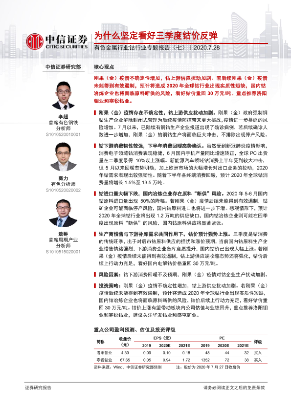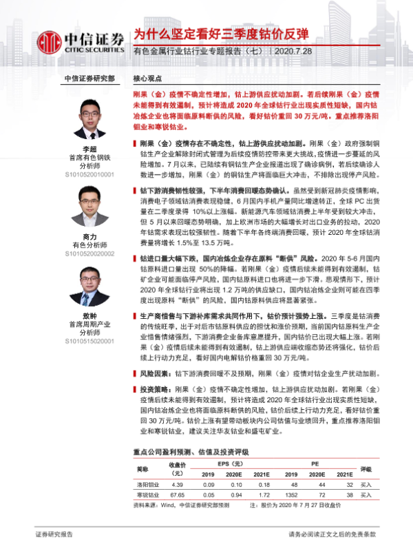 【中信证券】【20200728】为什么坚定看好三季度钴价反弹-18页