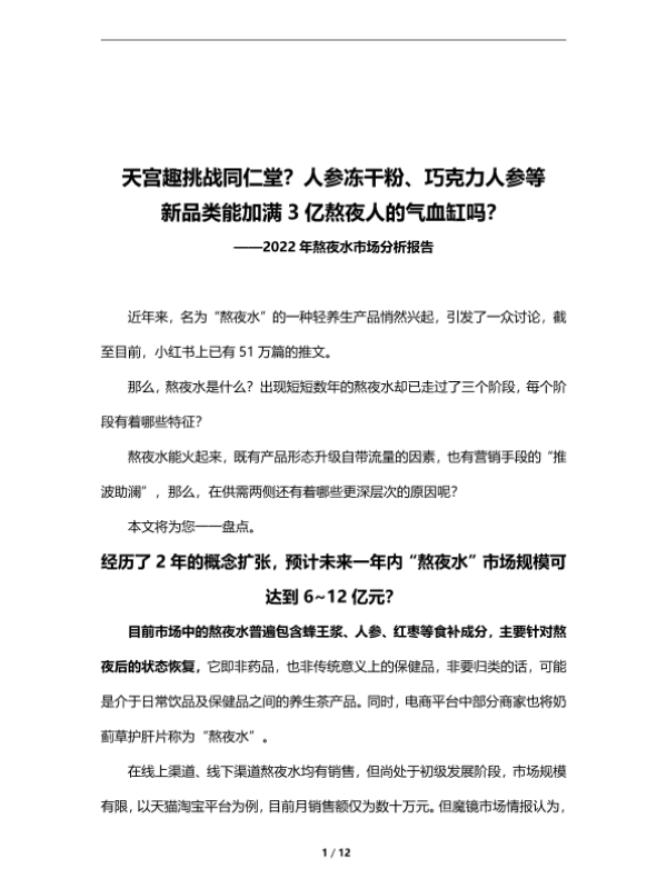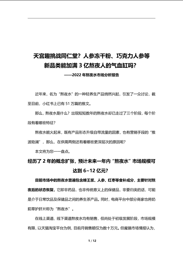 【魔镜市场情报】【20220101】2022年熬夜水市场分析报告-12页