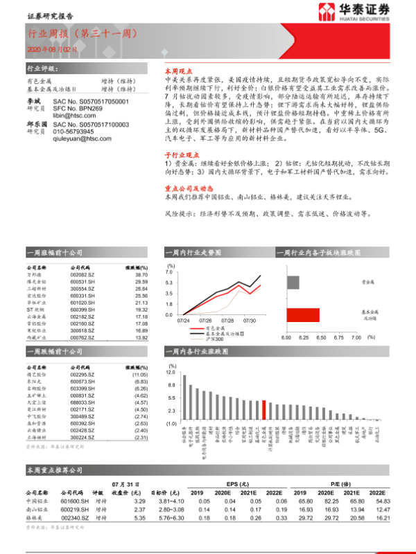 【华泰证券】【20200802】20200802-华泰证券-有色金属行业周报(第三十一周)-18页