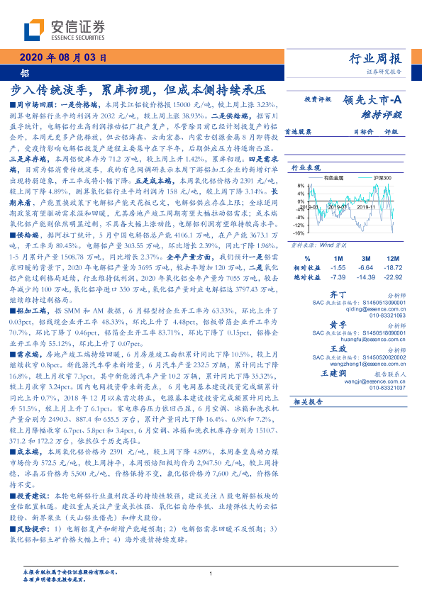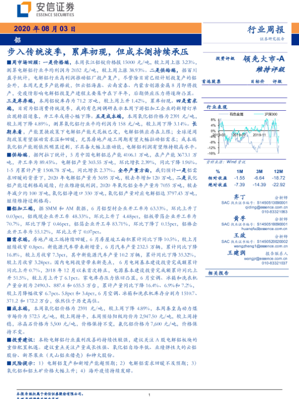 【安信证券】【20200803】20200803-安信证券-铝行业周报:步入传统淡季,累库初现,但成本侧持续承压-24页