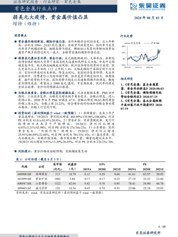 【东吴证券】【20200803】20200803-东吴证券-有色金属行业点评:弱美元大疫情,贵金属价值凸显-15页