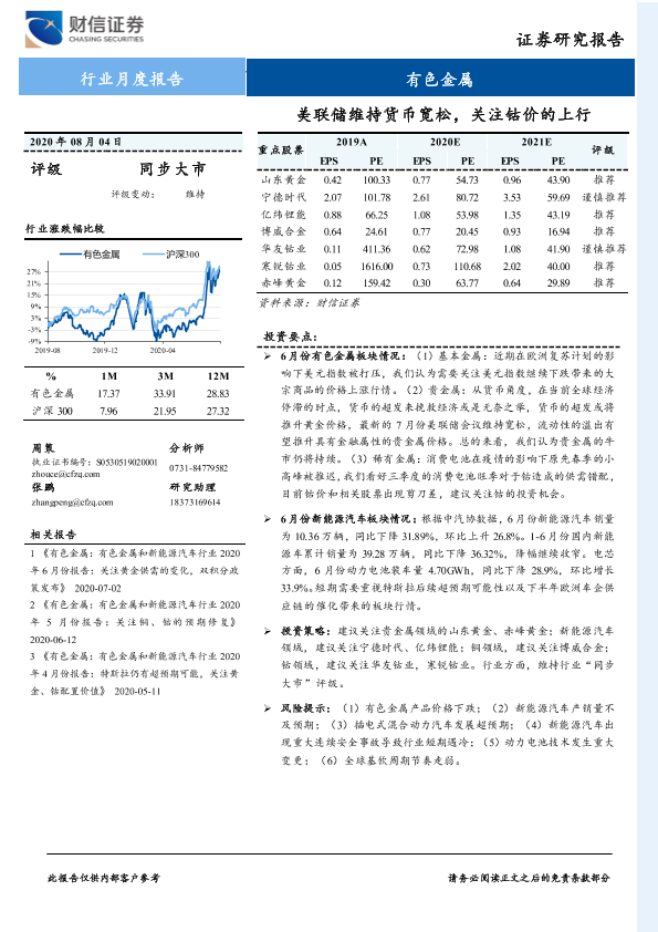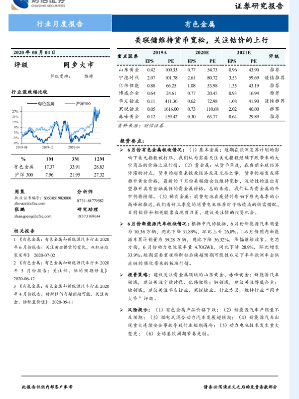 【财信证券】【20200804】20200804-财信证券-有色金属行业月度报告:美联储维持货币宽松,关注钴价的上行-14页