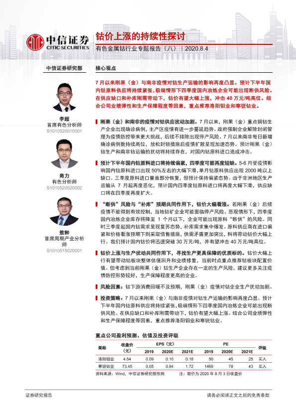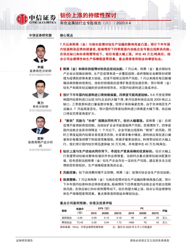 【中信证券】【20200804】有色金属钴行业专题报告(八):钴价上涨的持续性探讨-16页