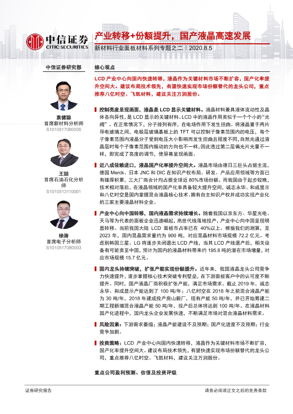 【中信证券】【20200805】新材料行业面板材料系列专题之二:产业转移+份额提升,国产液晶高速发展-37页