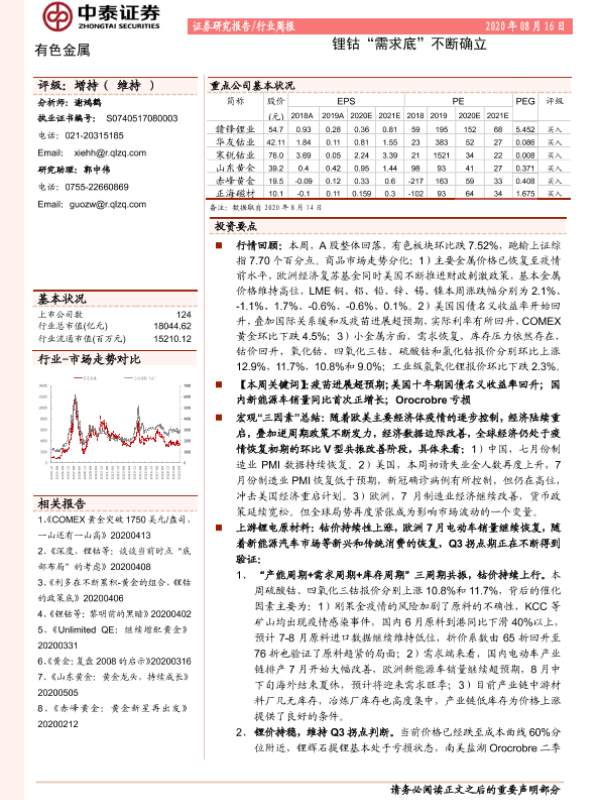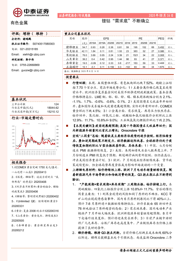 【中泰证券】【20200816】20200816-中泰证券-有色金属行业周报:锂钴“需求底”不断确立-41页