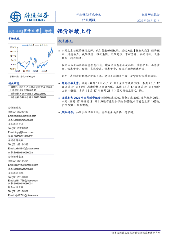 【海通证券】【20200822】20200822-海通证券-有色金属行业周报:锂价继续上行-5页
