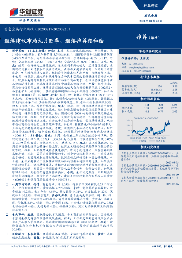 【华创证券】【20200823】20200823-华创证券-有色金属行业周报:继续建议布局九月旺季,继续推荐铝和钴-19页