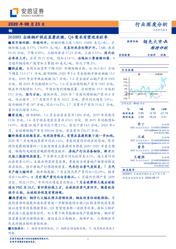 【安信证券】【20200823】2020H1全球铜矿供应显著放缓,Q4需求有望迎来旺季-12页