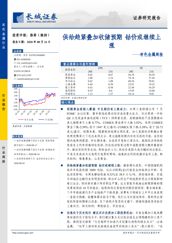【长城证券】【20200824】20200824-长城证券-有色金属周报:供给趋紧叠加收储预期 钴价或继续上涨-12页