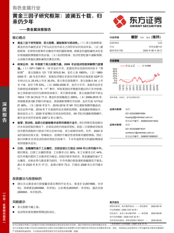 【东方证券】【20200825】20200825-东方证券-贵金属深度报告:黄金三因子研究框架:波澜五十载,归来仍少年-40页