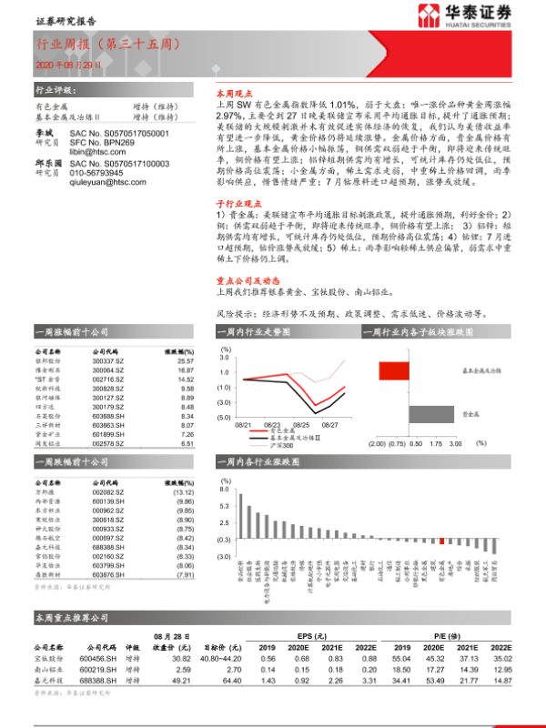 【华泰证券】【20200829】20200829-华泰证券-有色金属行业周报(第三十五周)-19页
